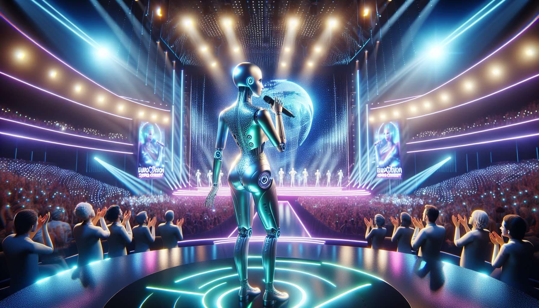 No - check what the rules and aims are of Eurovision, and how the European Broadcasting Union relates to that. They will certainly not eliminate human lead singers, even if they permit generated backing singers.